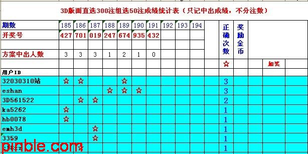 3D版面192期 直选300注组选50注专帖 Post By:2010-07-17 20:14:00