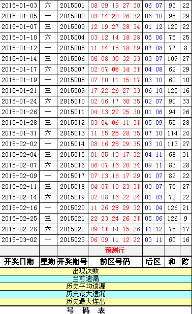 [原创]2015年24期大乐透后区 Post By:2015-03-04 10:32:00